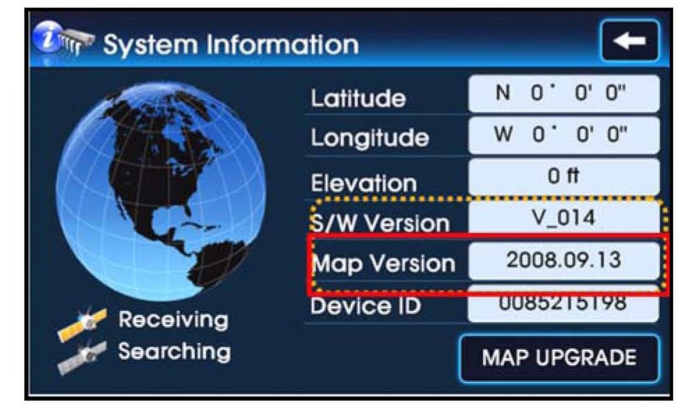 4. Check the Map Version on the screen.