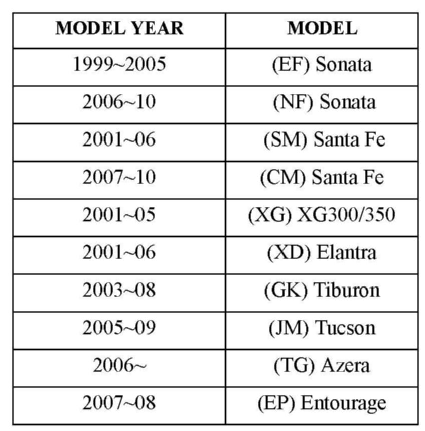 Model SEE APPLICABLE VEHICLES