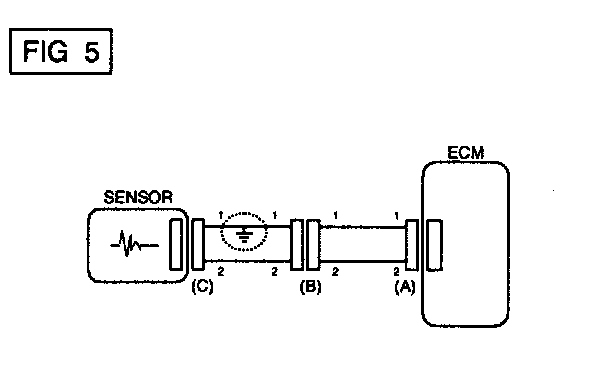 a. With each connector still connected, measure the voltage between the chassis ground and terminal 1 of each connectors (A), (B) and (C) as shown in [FIG. 4].
