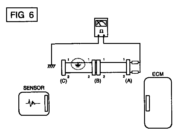 a. Disconnect connectors (A), (C) and measure for resistance between connector (A) and Chassis Ground as shown in [FIG. 6].