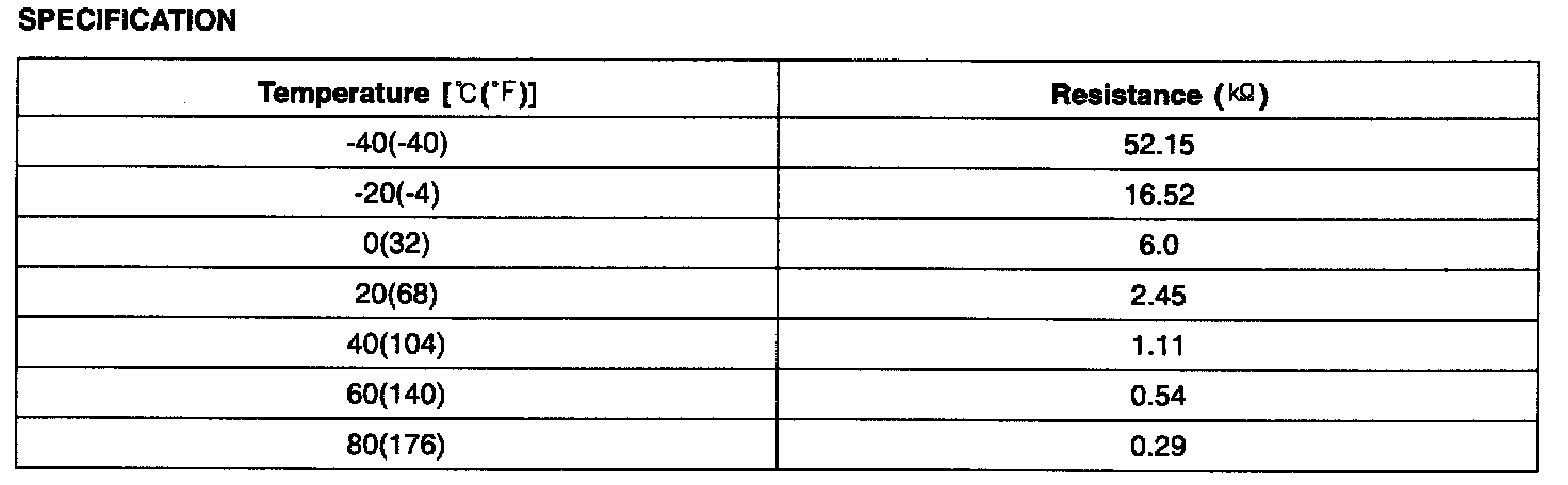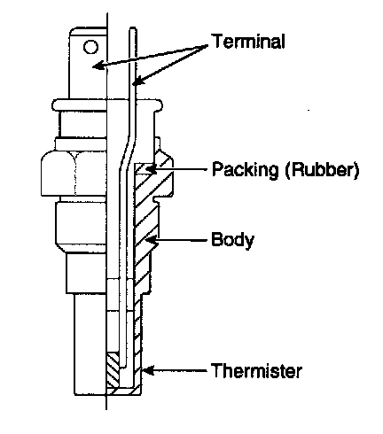 4. After immersing the thermistor of the sensor into water (or engine coolant), measure resistance between OTS terminals 1 and 2.