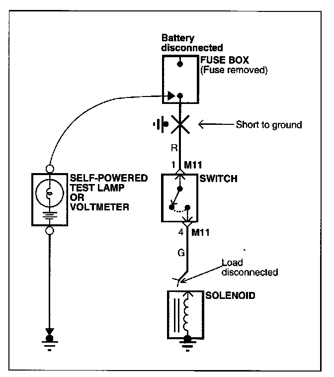 CAUTION: Never use a sell-powered test lamp on circuits that contain solid state modules. Damage to these modules may result.