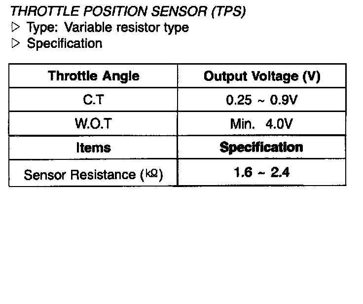 Throttle Position Sensor (TPS) - Specification:
