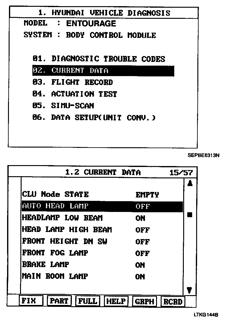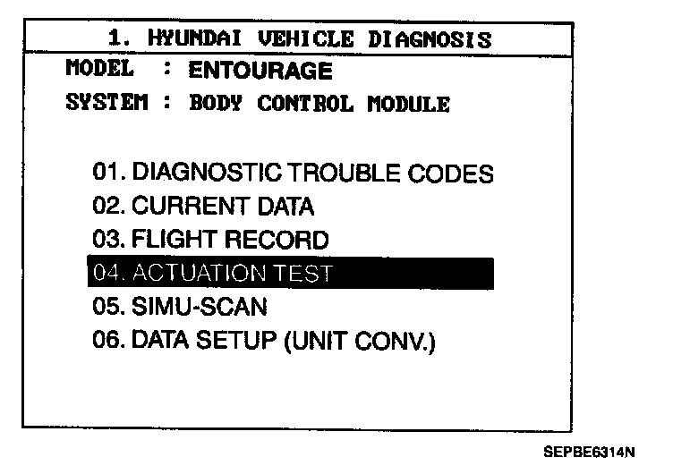 2. To diagnose the BCM function, select the menu of model and body control module.