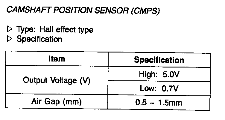 Camshaft Position Sensor (CMPS) - Specification: