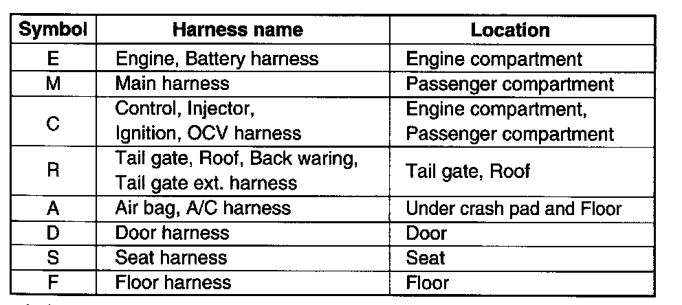 * It depends on vehicles, it is necessary to check the harness name symbol on the harness layouts for detailed symbol.