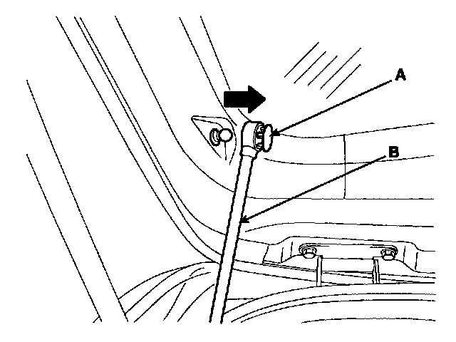 4. Use a small screw driver to loosen clip (A). But do not remove power tailgate push rod (B).