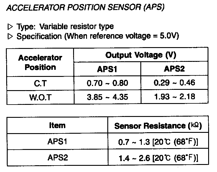 Accelerator Position Sensor (APS) - Specification: