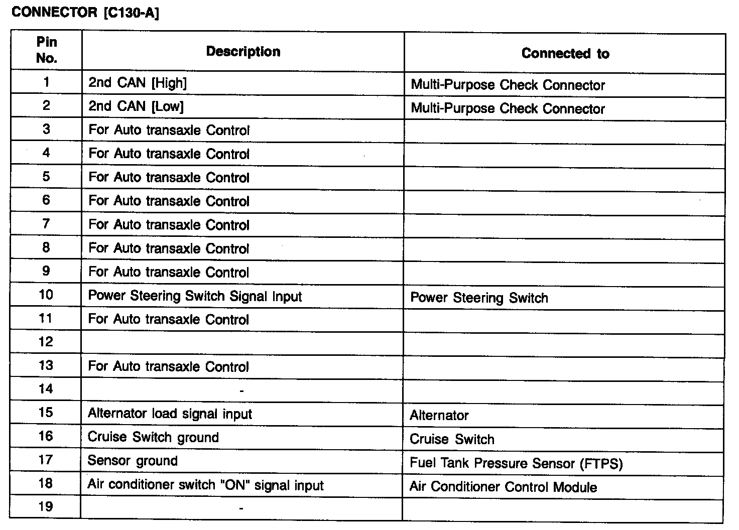PCM Terminal Input/Output Signal - (C130-A) Part 2: