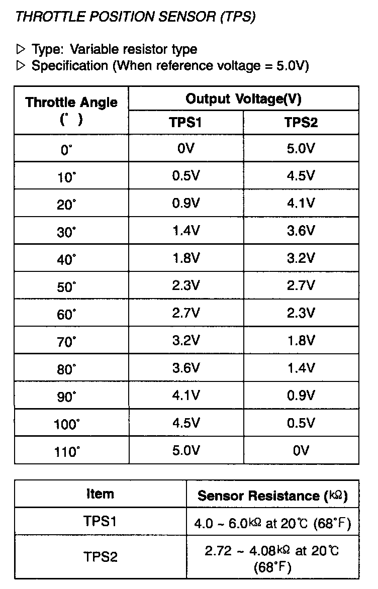 Throttle Position Sensor (TPS) - Specification: