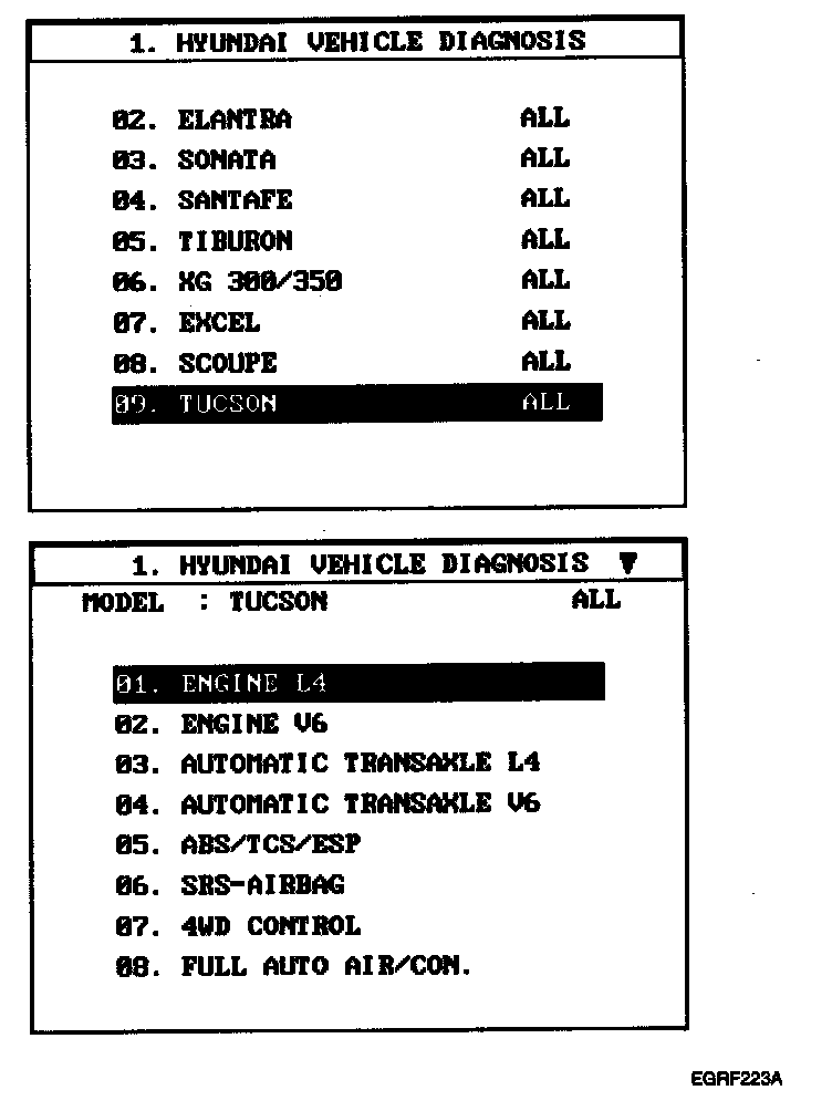 1. Select "Vehicle" and "Engine" (For example, TUCSON 2.0L L4).