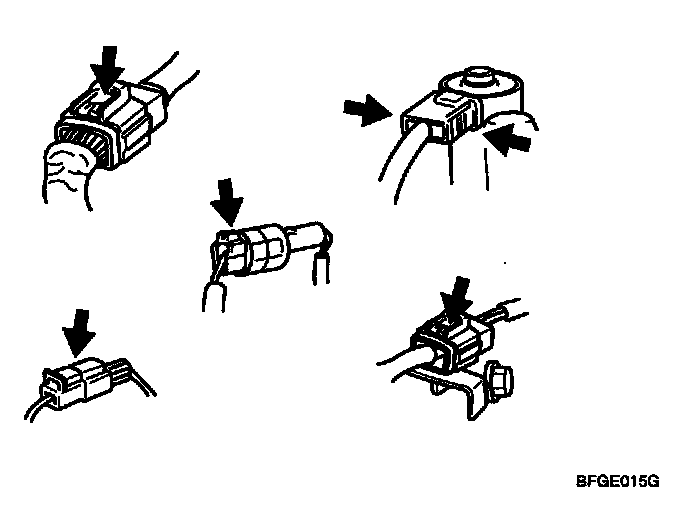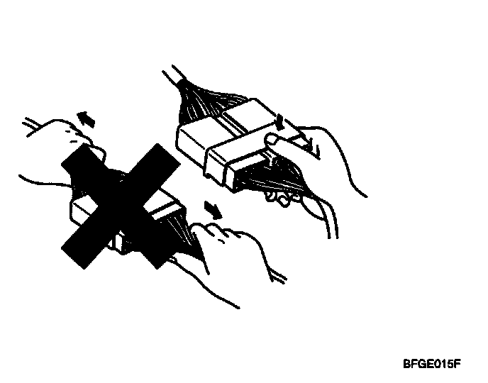 b. When the connector is disconnected : Check missed terminal, crimped terminal or broken core wire by slightly pulling the wire harness. Visually check for rust, contamination, deformation and bend.