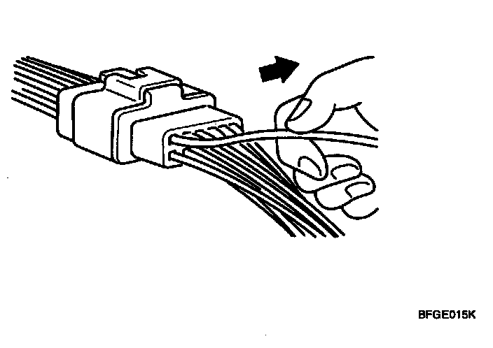 c. Check terminal tightening condition : Insert a spare male terminal into a female terminal, and then check terminal tightening conditions.