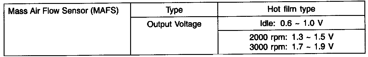 Mass Air Flow Sensor (MAFS) - Specifications: