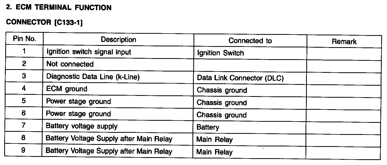 ECM Terminal Function - Connector [C133-1]: