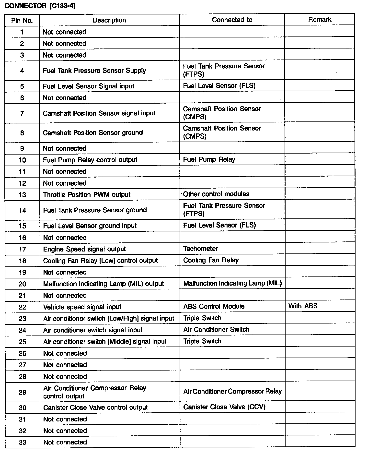 ECM TERMINAL INPUT/OUTPUT SIGNAL- CONNECTOR [C133 -4]
