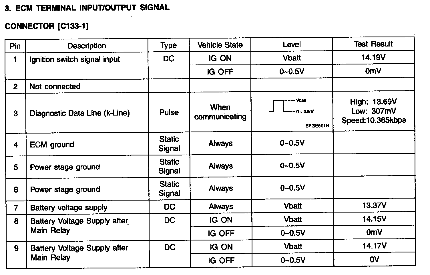 ECM Terminal Input/Output Signal - Connector [C133-3] (Part 3):