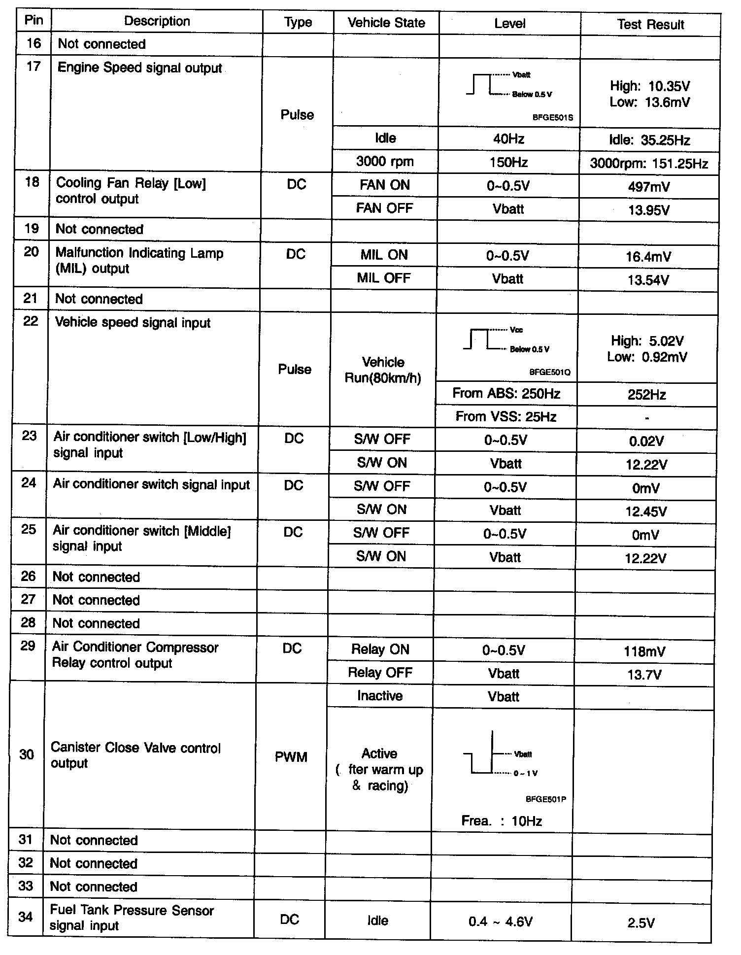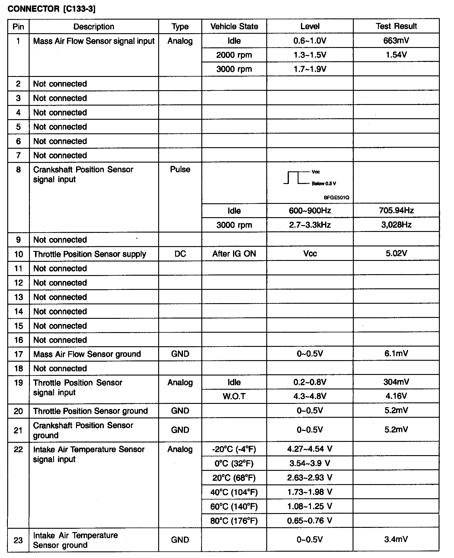 ECM Terminal Input/Output Signal - Connector [C133-1]: