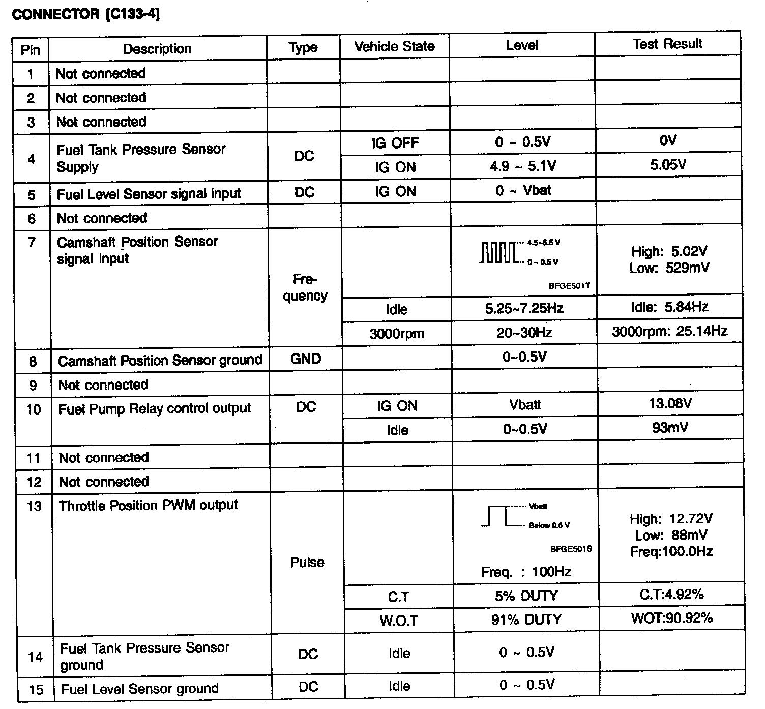 ECM Terminal Input/Output Signal - Connector [C133-5]: