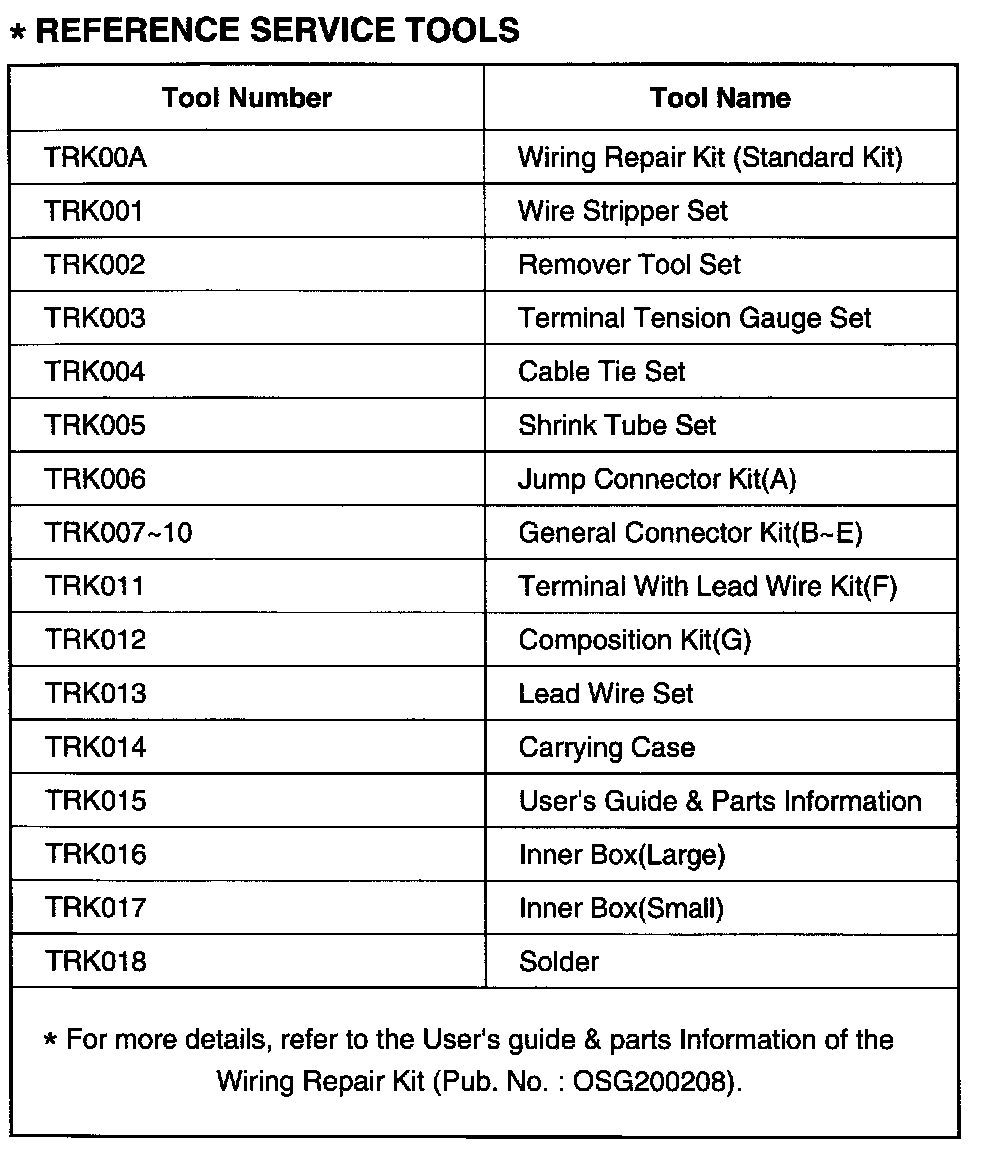 WIRING REPAIRREFERENCE SERVICE TOOLS