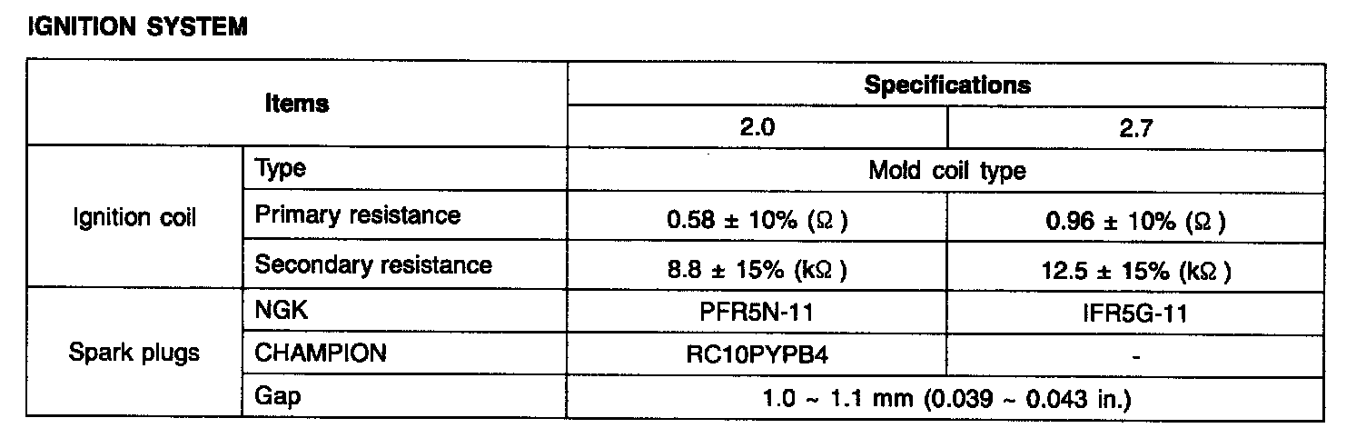 Ignition System: Specifications