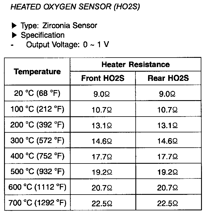 Heated Oxygen Sensor (HO2S) - Specifications: