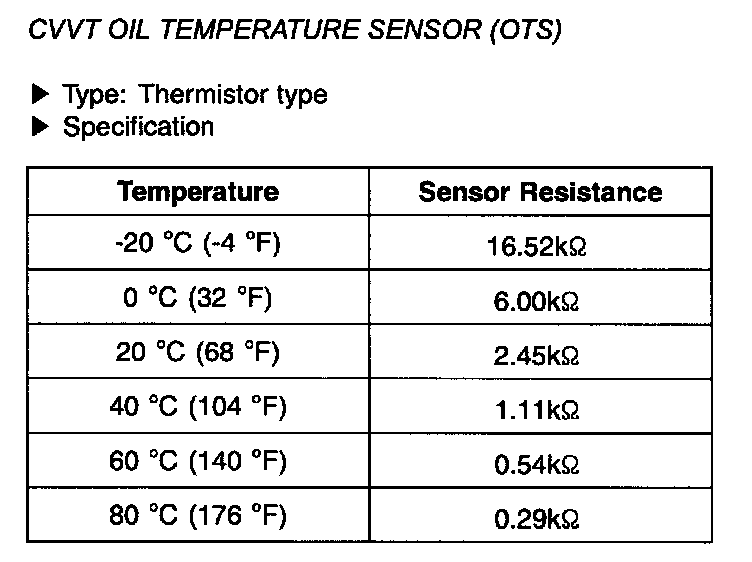 CVVT Oil Temperature Sensor (OTS) - Specifications: