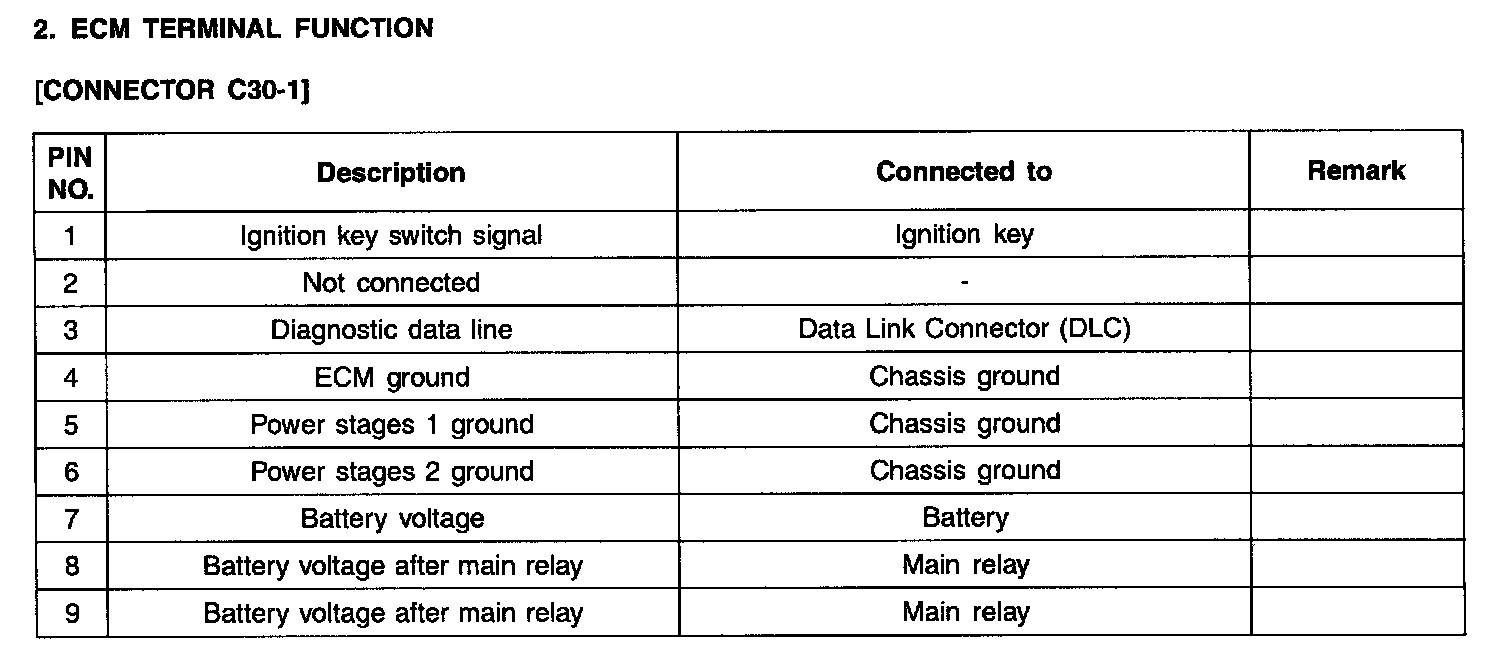ECM Terminal Function - Connector (C30-1):