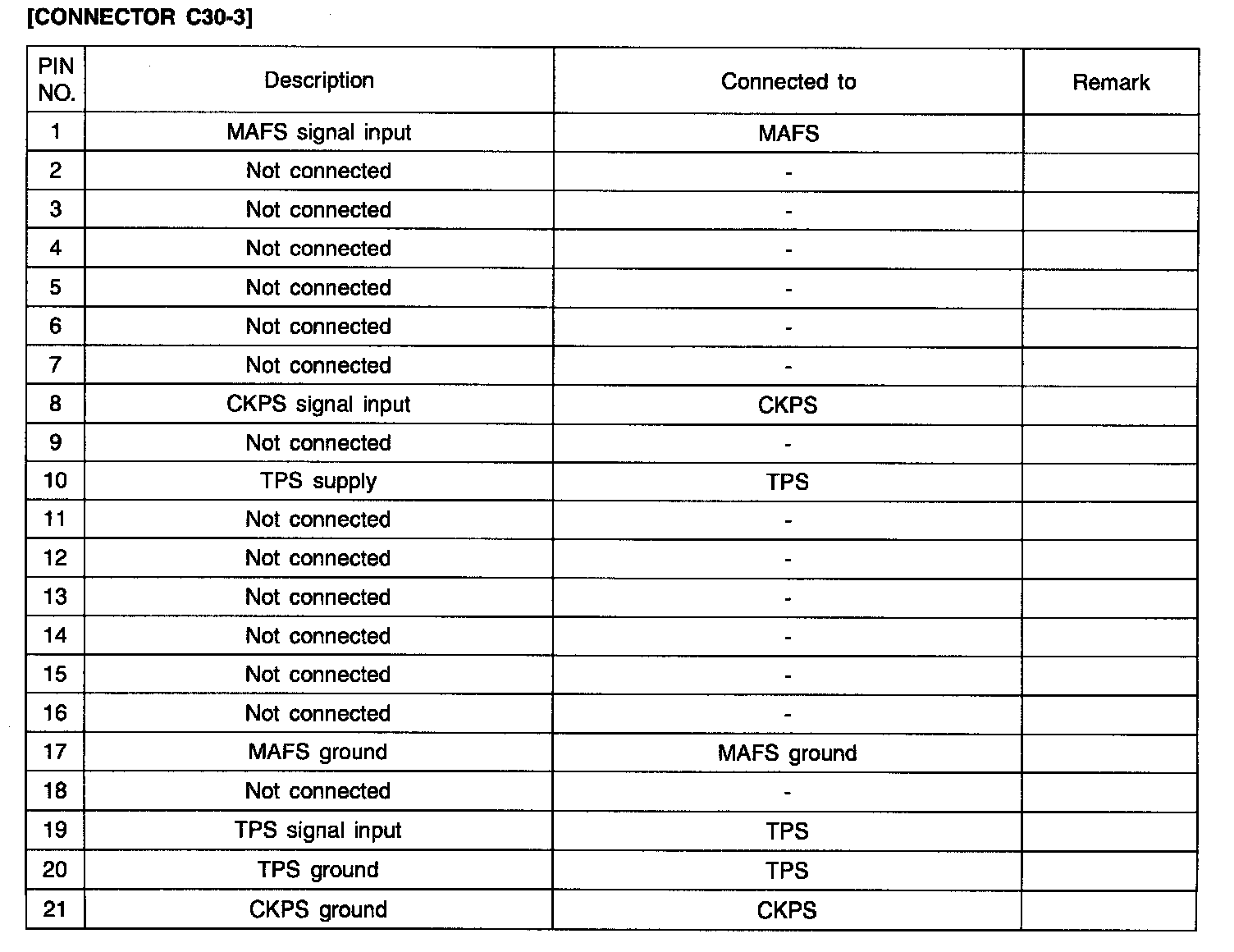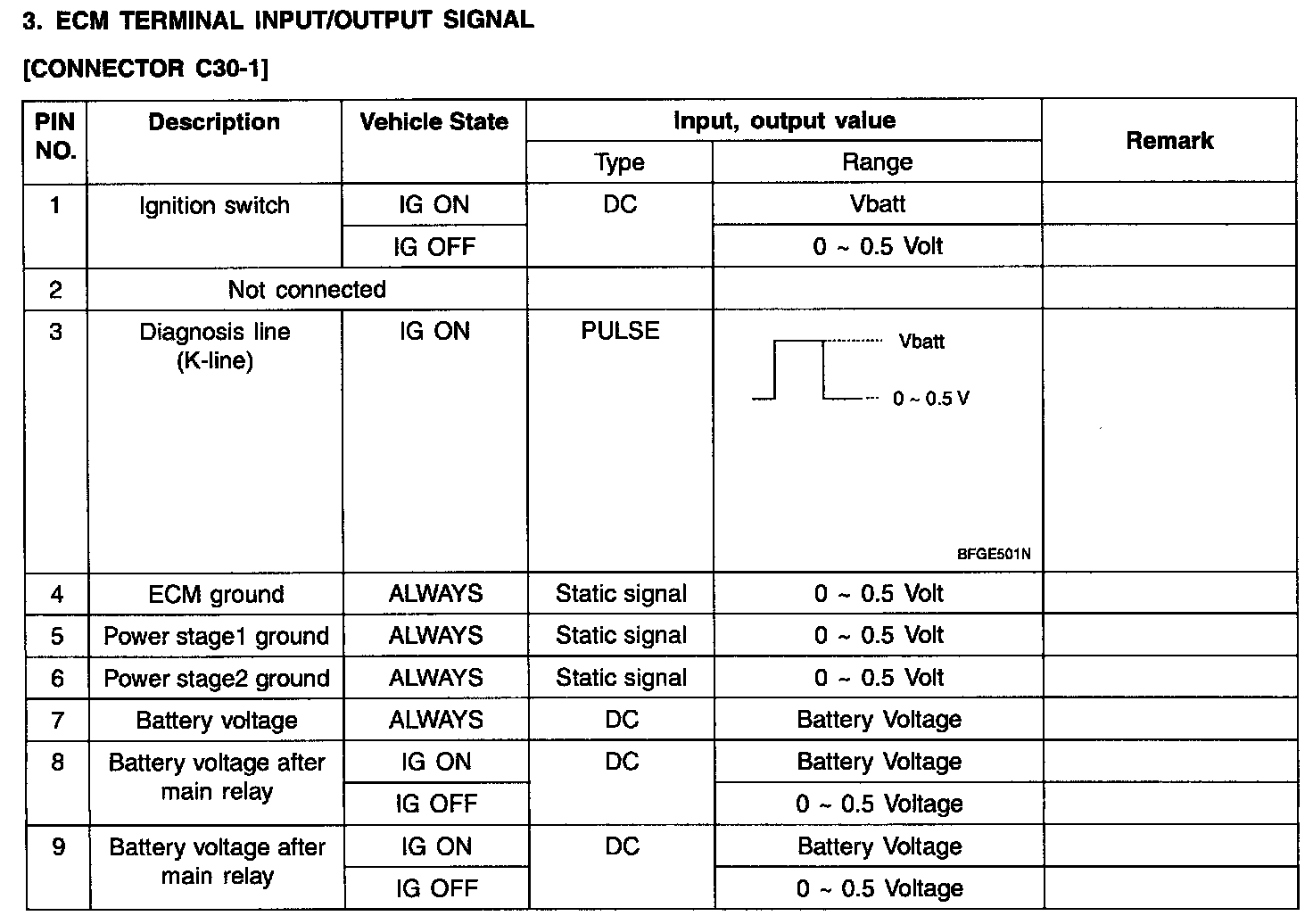 ECM Terminal Input/Output Signal Connector C30-3 (Part 1):