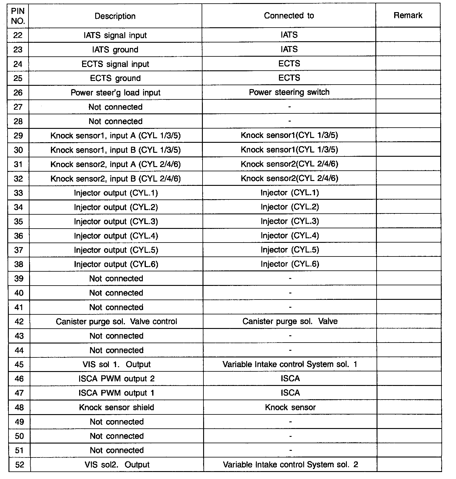 ECM Terminal Input/Output Signal Connector C30-2 (Part 2):
