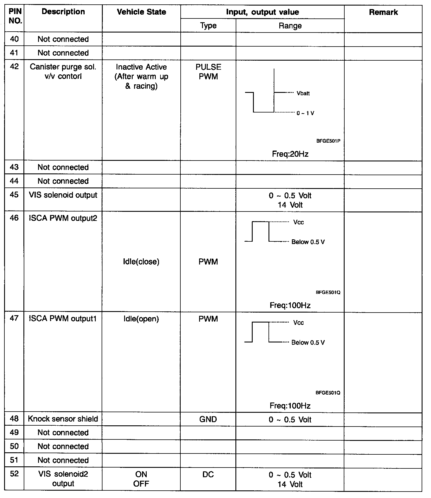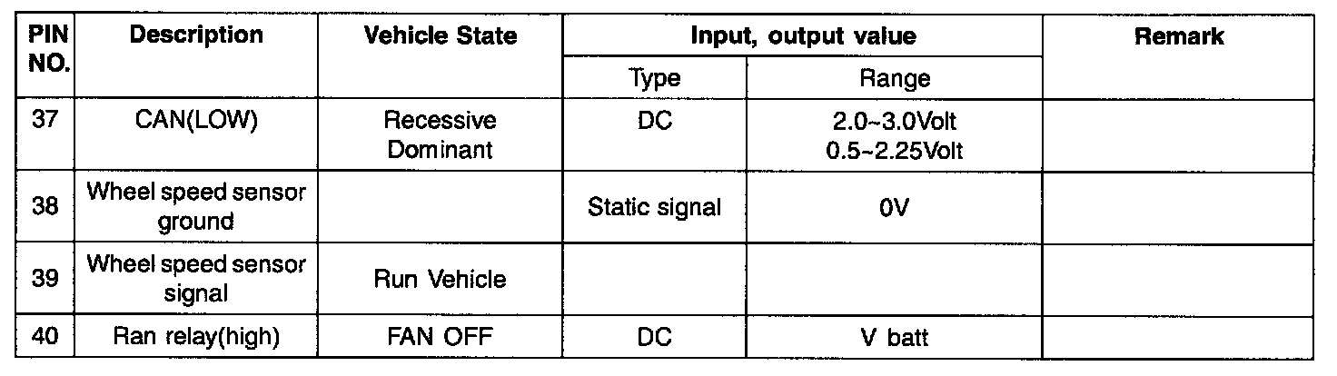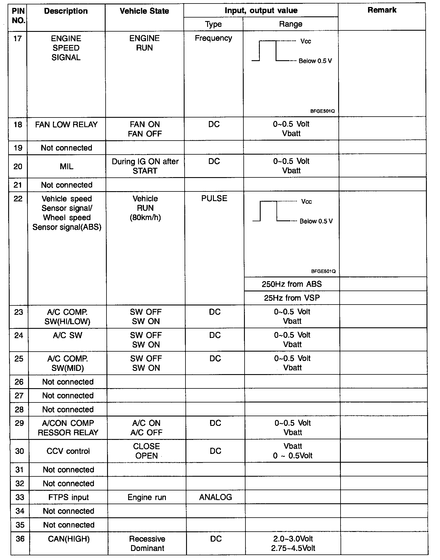 ECM TERMINAL INPUT/OUTPUT SIGNAL