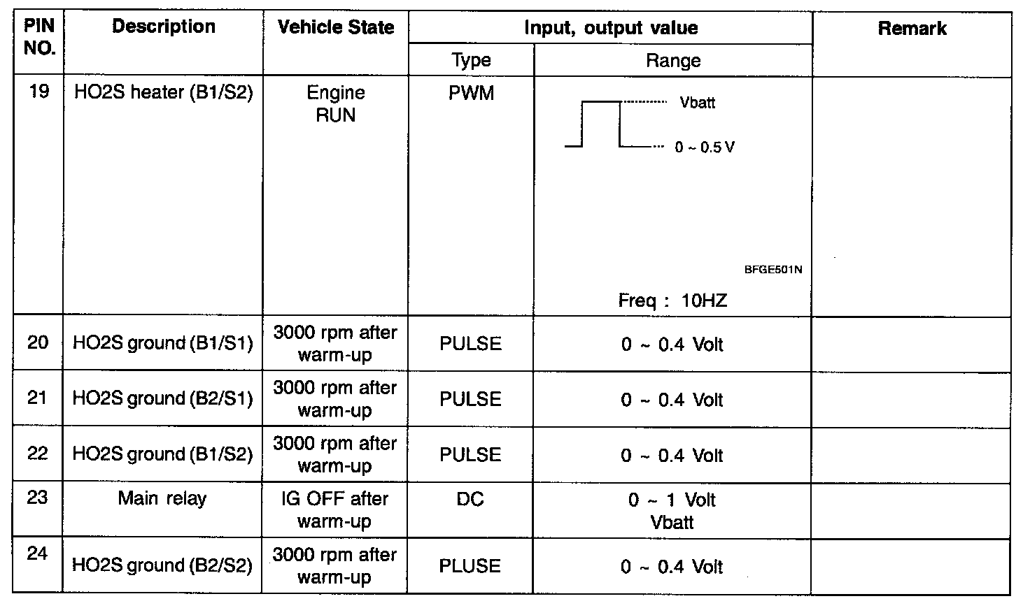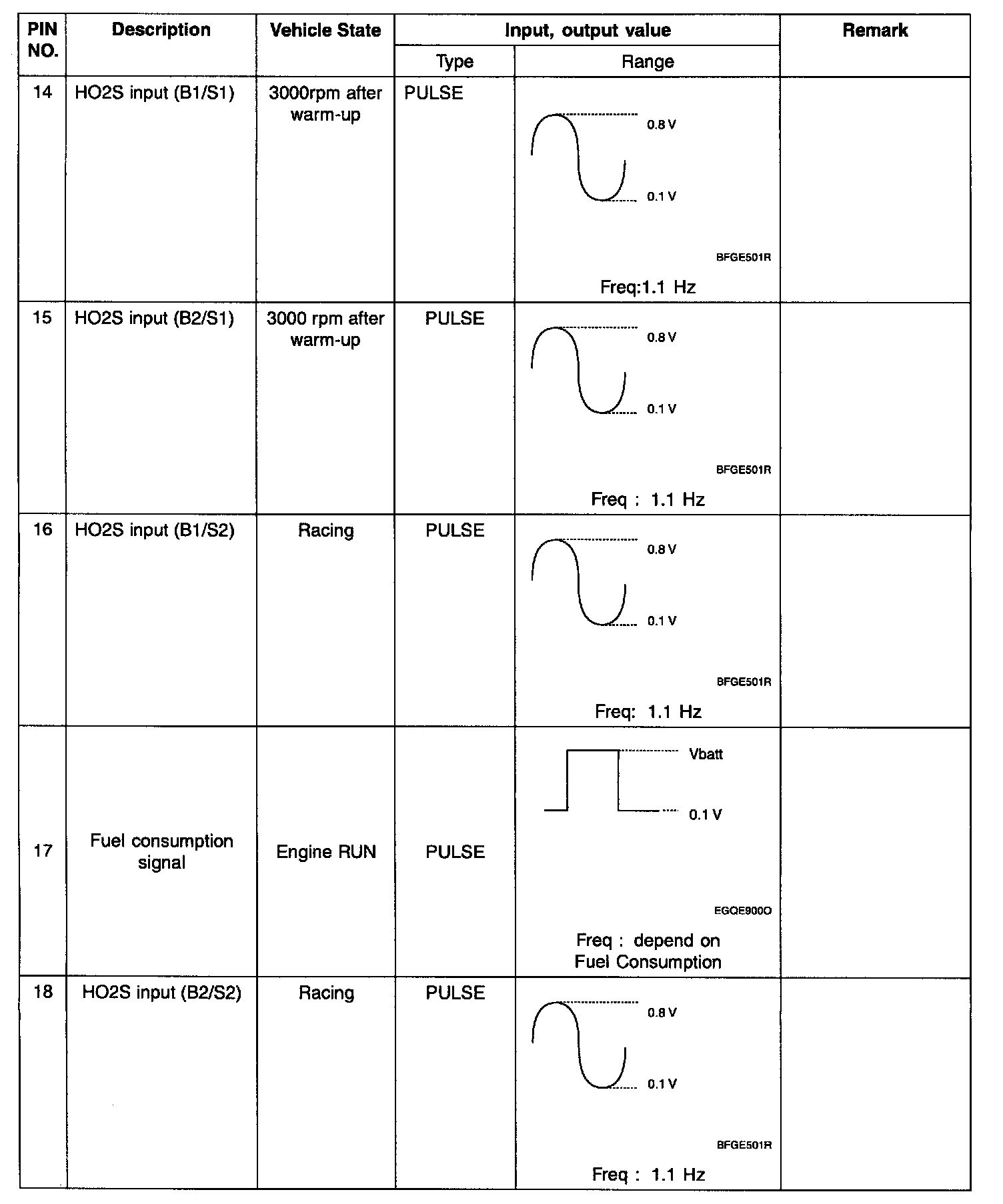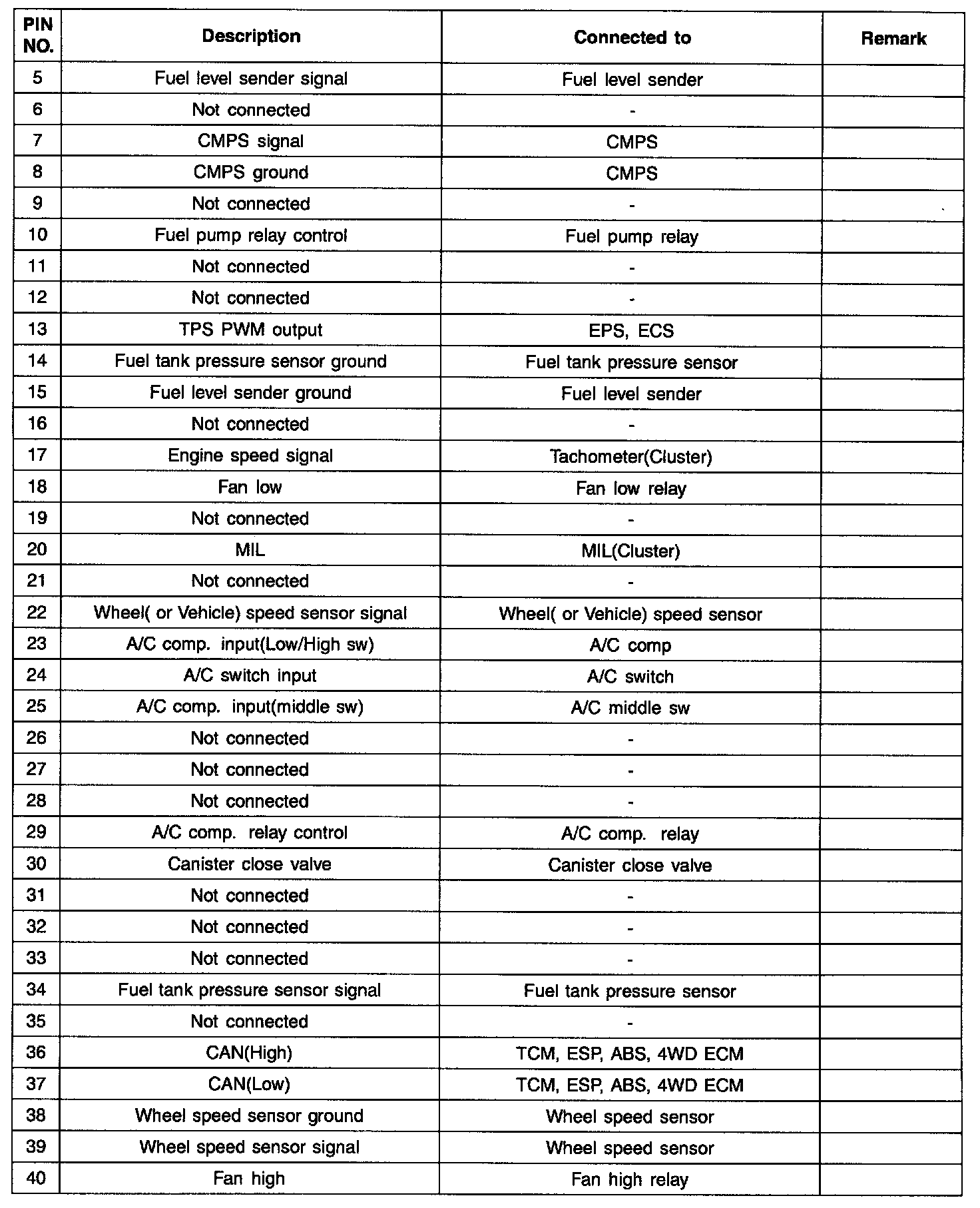 ECM TERMINAL INPUT/OUTPUT SIGNAL
