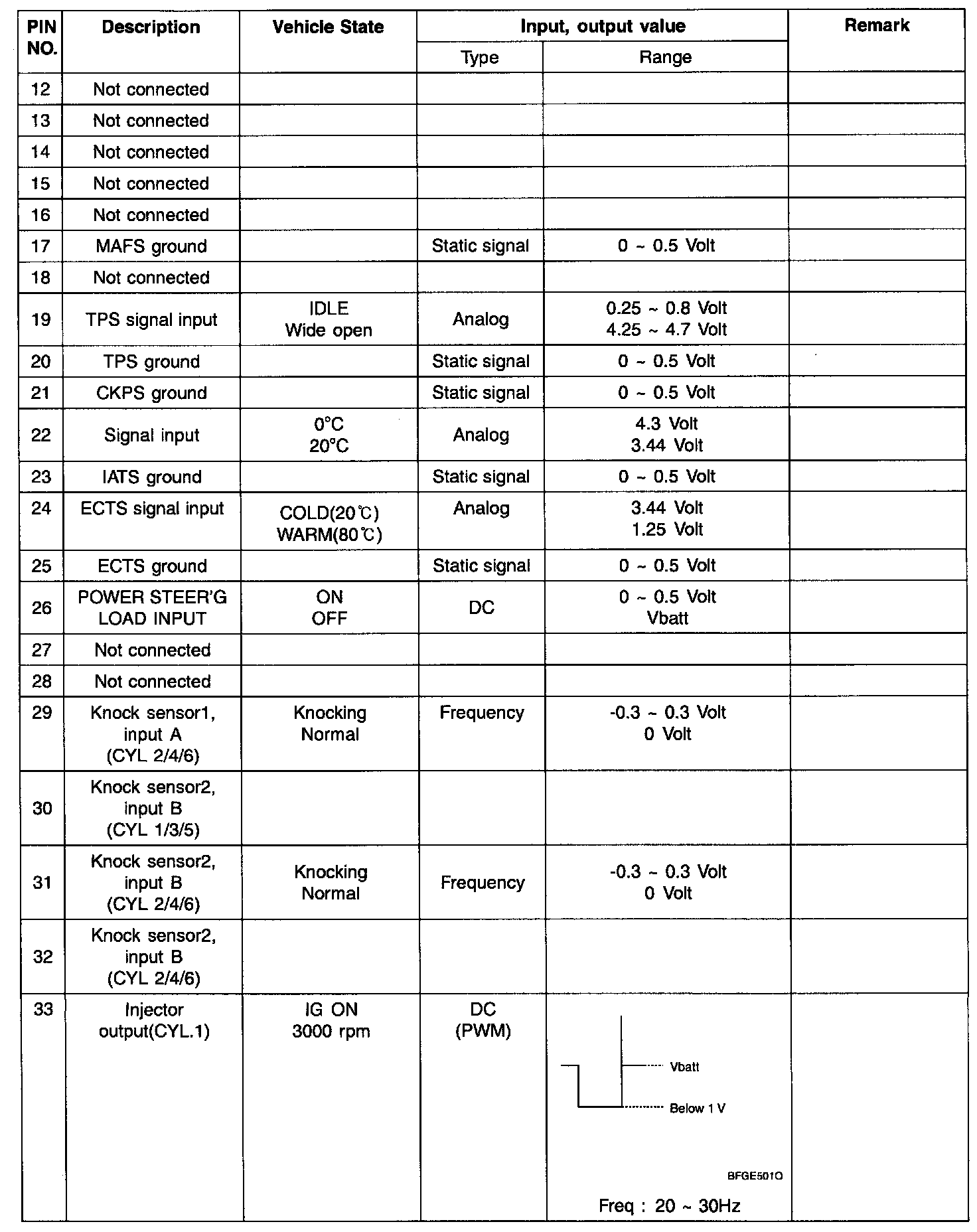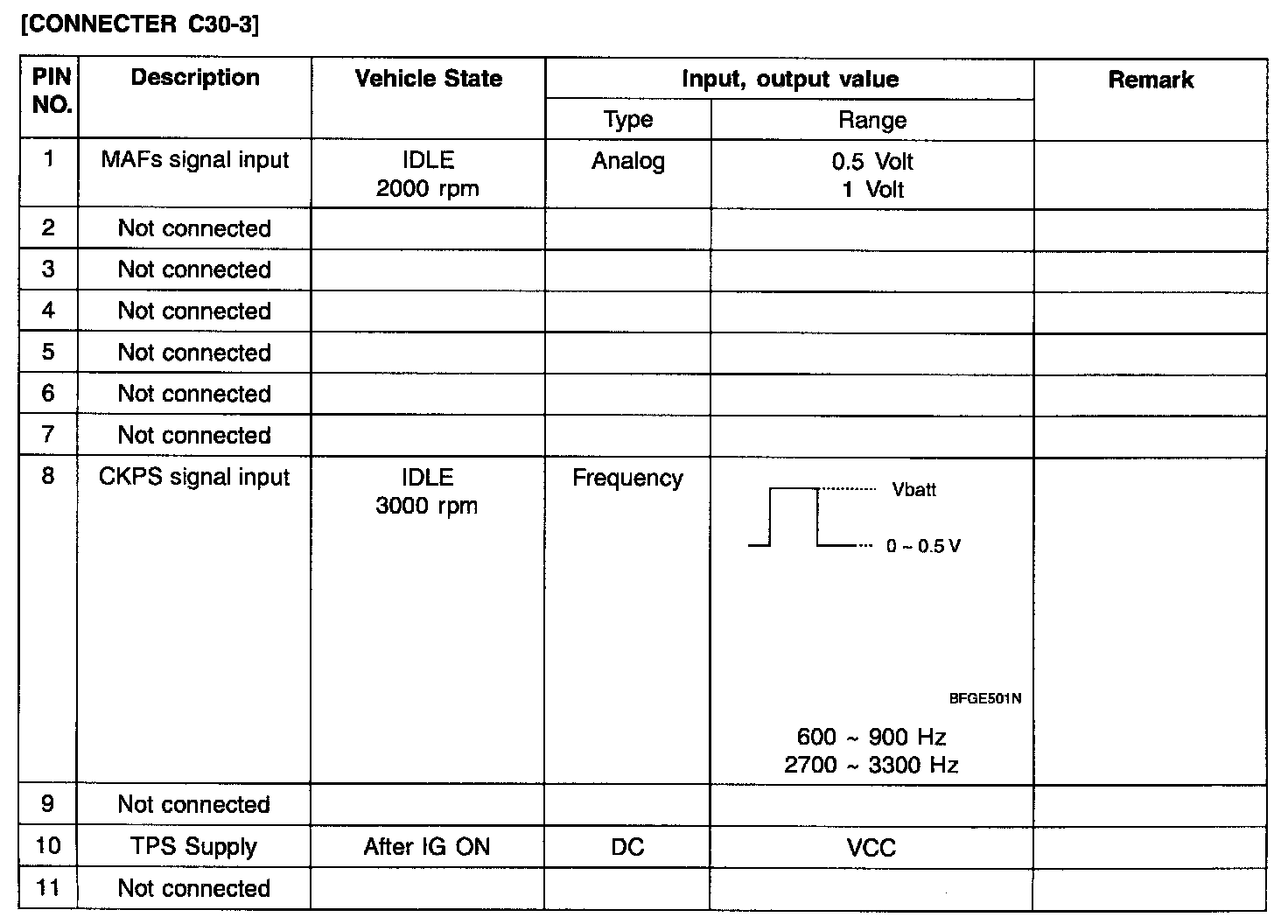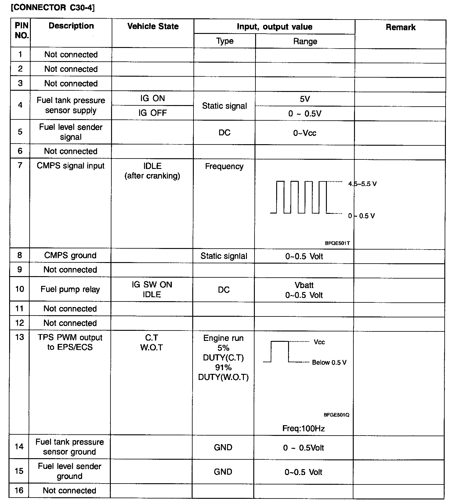 ECM Terminal Input/Output Signal - Connector (C30-1):