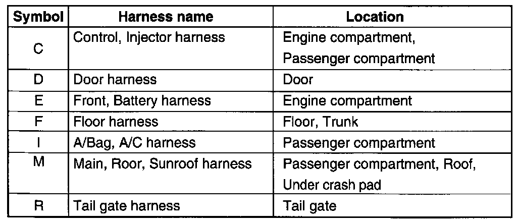 * It depends on vehicles, it is necessary to check the harness name symbol on the harness layouts for detailed symbol.