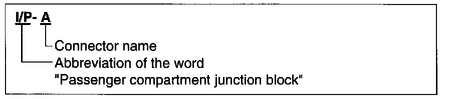 A junction block identification symbol consists of a wiring harness location classification symbol corresponding to a wiring harness location and number corresponding to the connector in the junction block.
