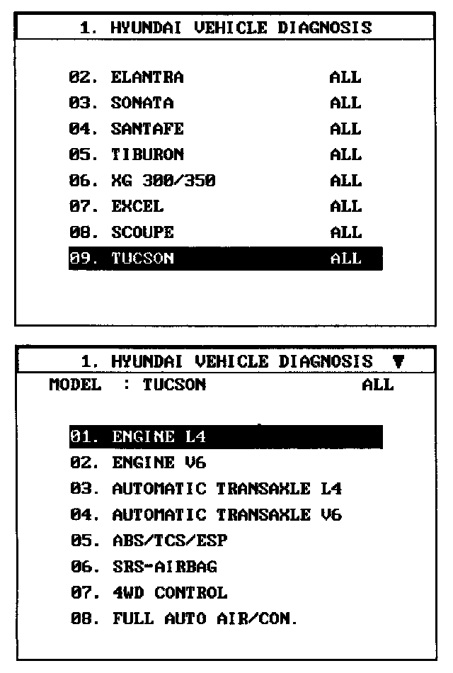 1. Select "Vehicle" and "Engine" (For example, TUCSON 2.0L L4).
