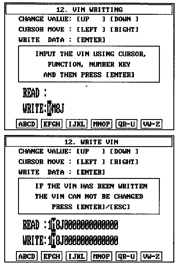 CAUTION: The programmed VIN cannot be changed. When writing the VIN, confirm the VIN carefully.