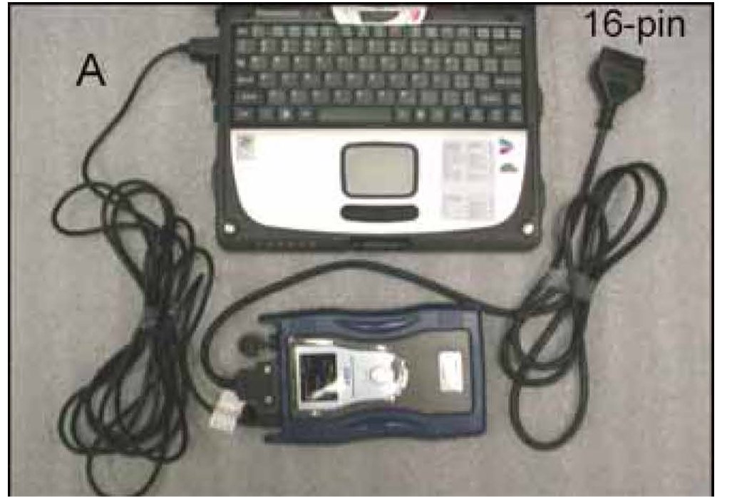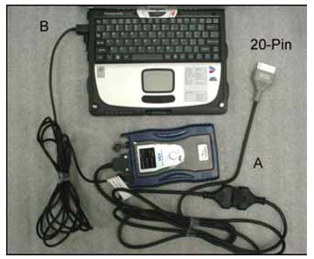 1. Connect the 20-pin DLC cable (A) to the 16-pin DLC cable.