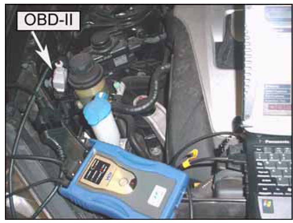 3. Connect the 20-pin connector to the OBD-II connector located in the engine compartment.