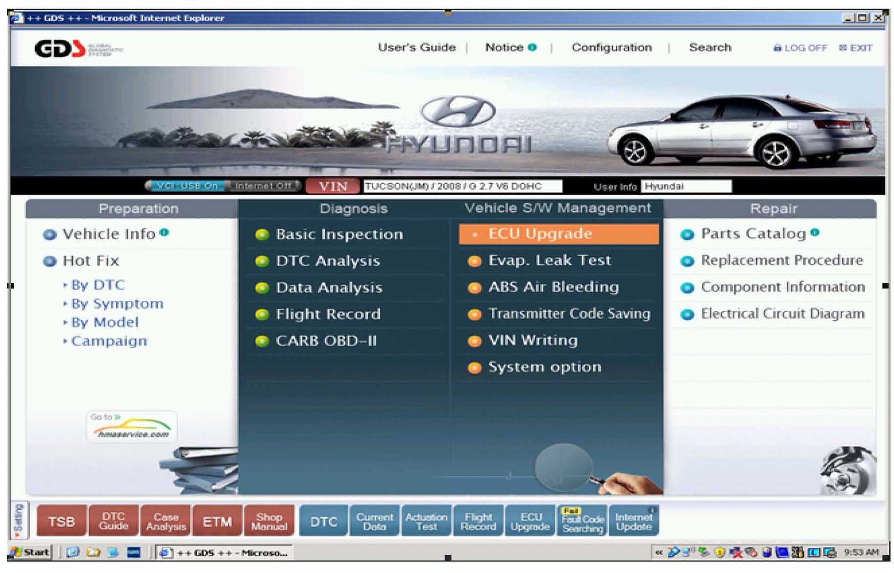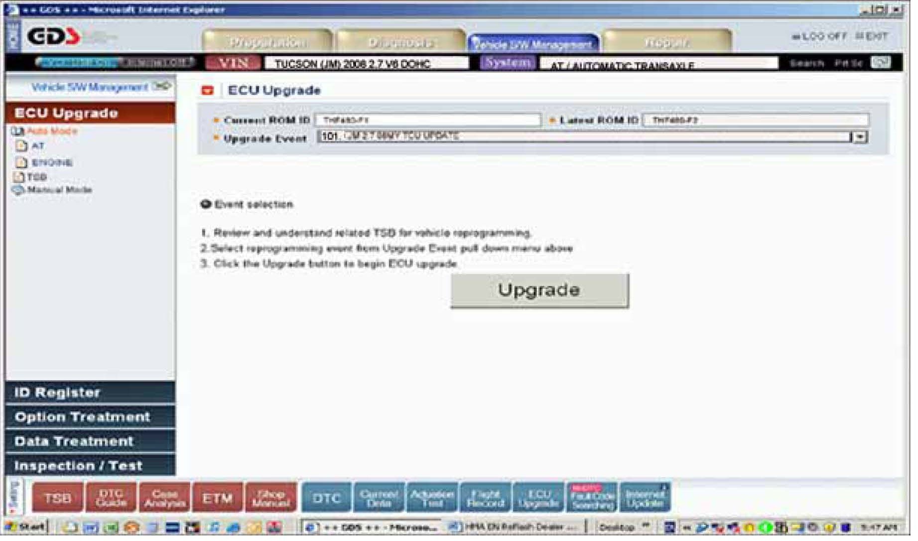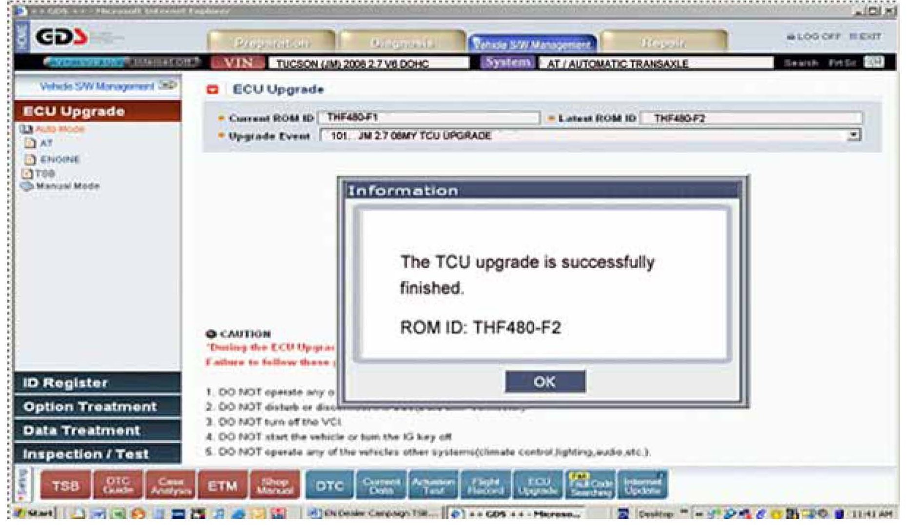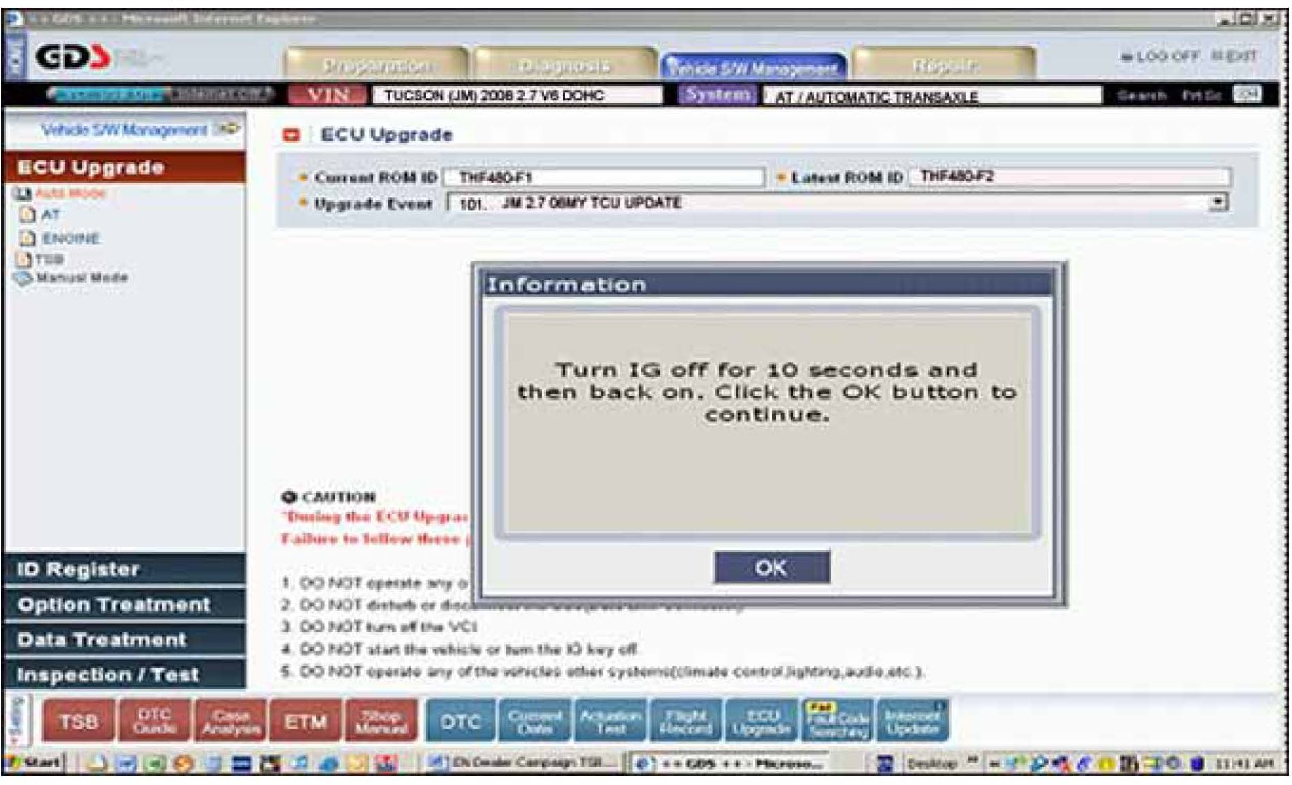 ^ Upgrade Event "101. JM 2.7 08MY TCU Update" for Tucson 2.7L