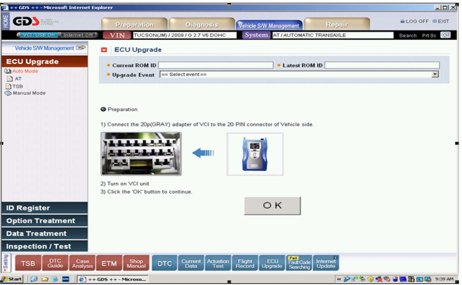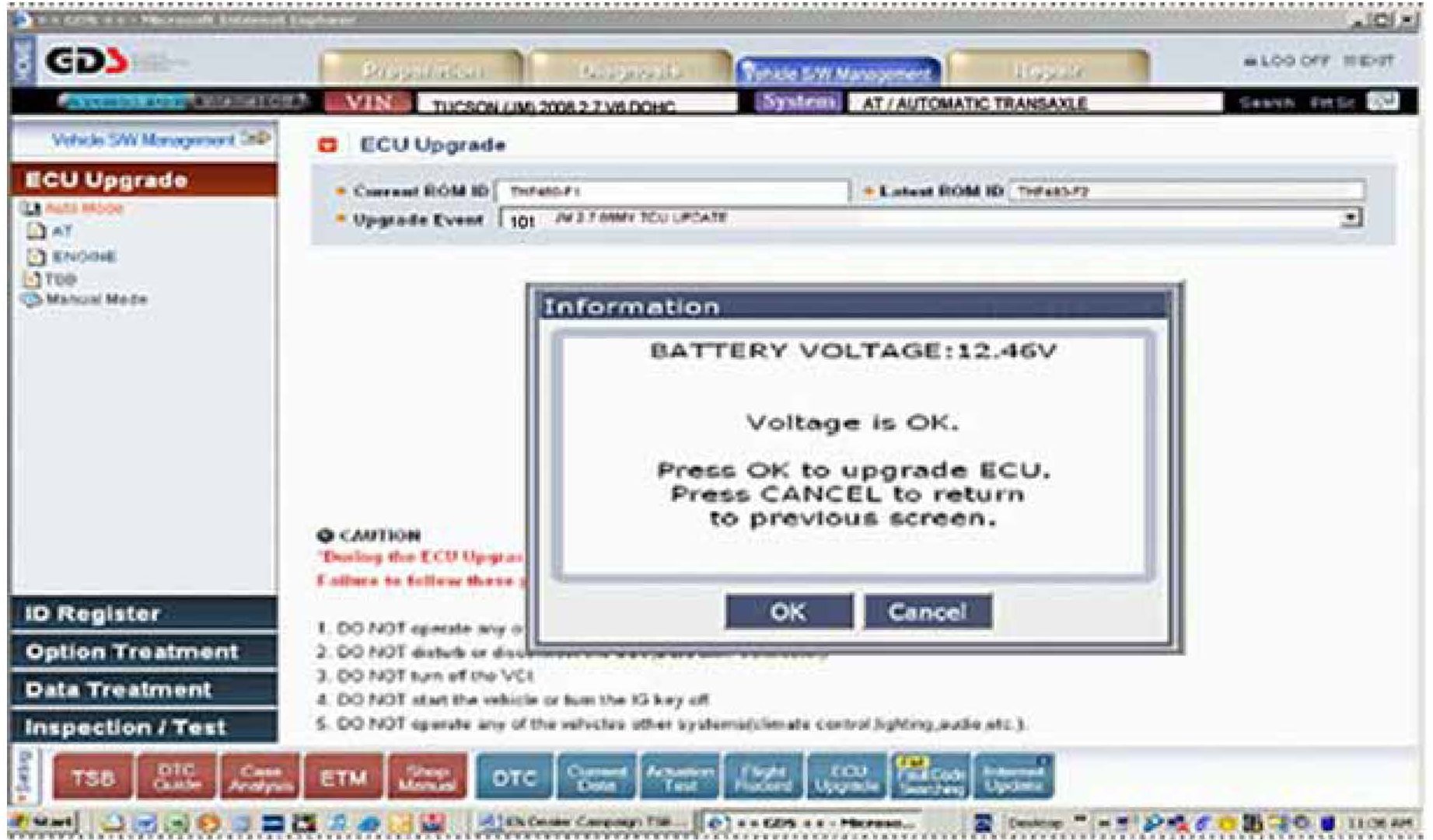 3. Select Auto Mode and AT under ECU Upgrade column. Select OK.