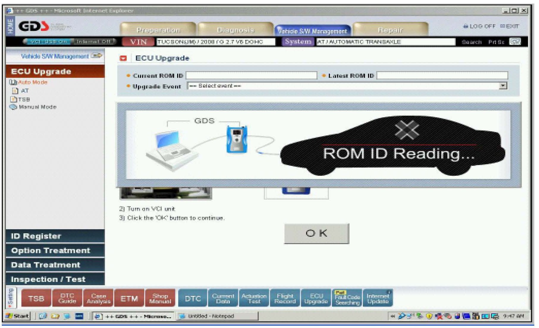4. After selecting OK, the GDS will read the ROM ID as shown above.