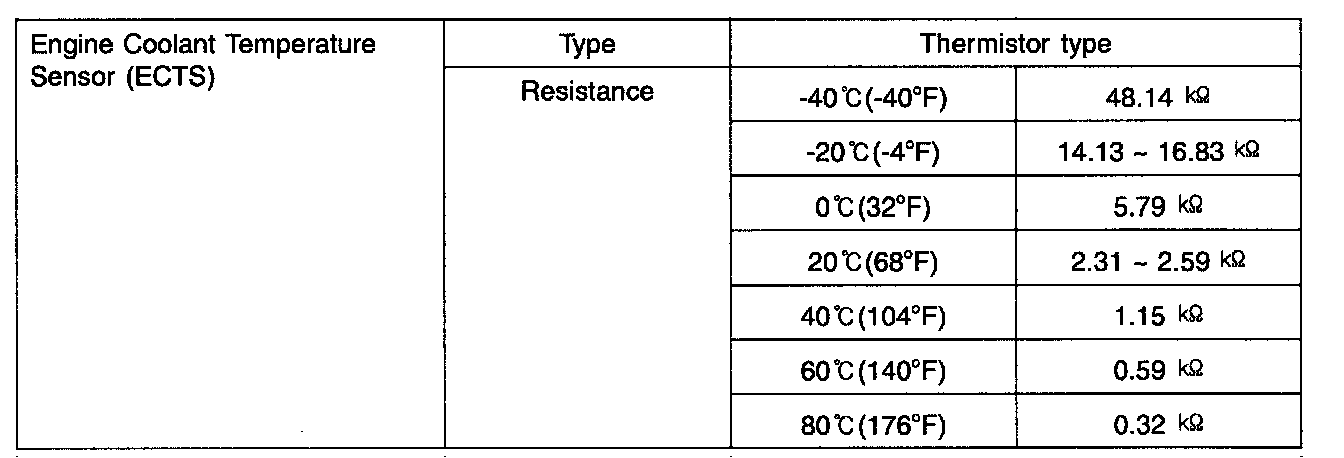 Engine Coolant Temperature Sensor (ECTS) - Specifications:
