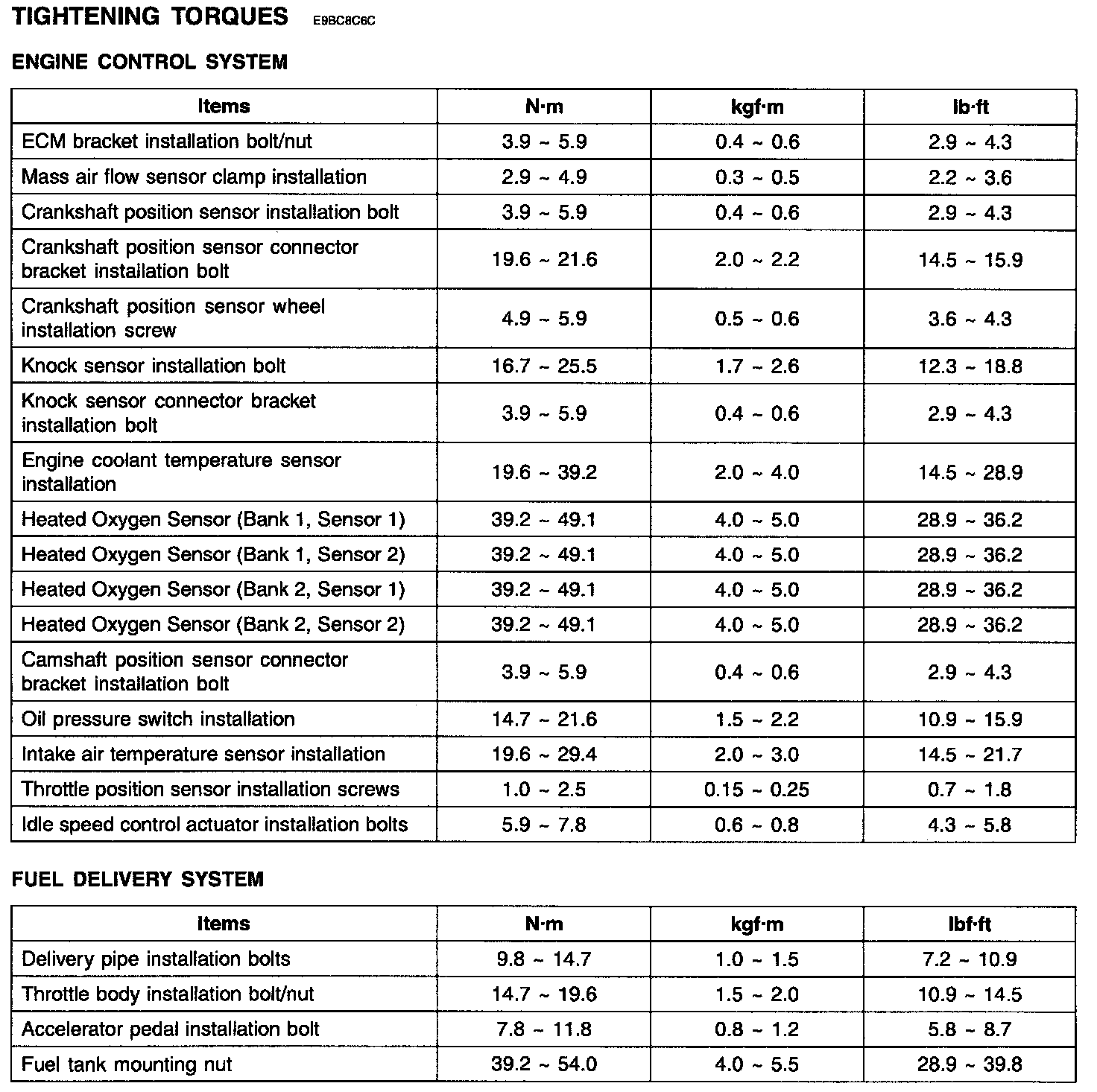 Tightening Torques: