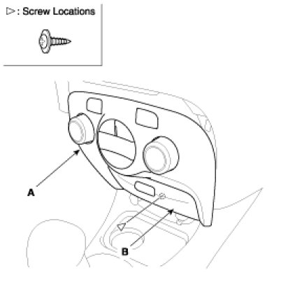 3. Disconnect the connector (A), then remove the center facia panel (B).