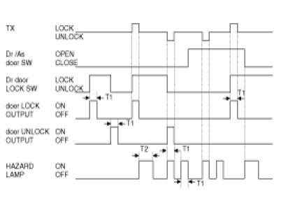 If the T Unlock signal is received within T2, the Unlock output shall be ON to all doors for T1. (After the driver door Key Unlock switch is turn to ON from OFF, if the same condition is satisfied within T2, then the Unlock output shall be ON to all doors.)