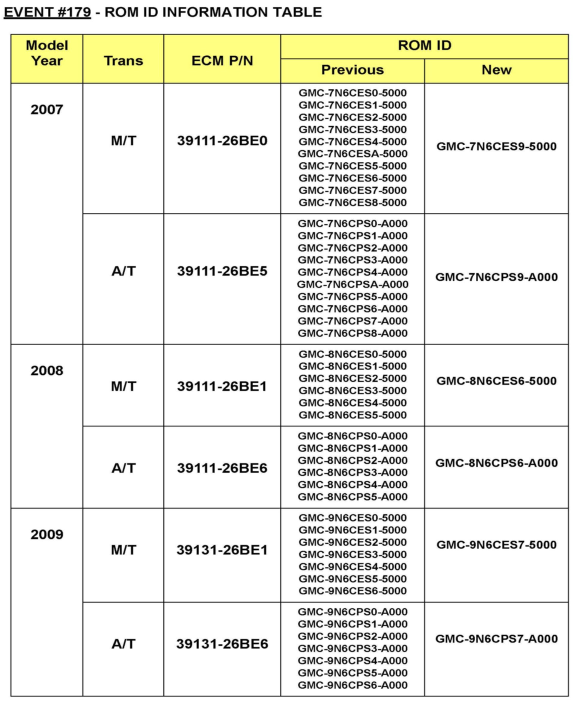 To verify the vehicle is affected, be sure to check the version of the vehicle's engine control unit ROM ID with reference to the ROM ID Information Table shown above before attempting to update the control unit software.