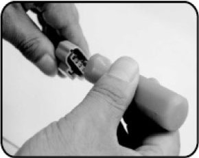 2. Insert each wire into the opposite ends of the inline solder and crimp using wire stripper.
