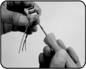 3. Put the end of each cut off wire in the middle of the splice joint terminal and compress using wire stripper.