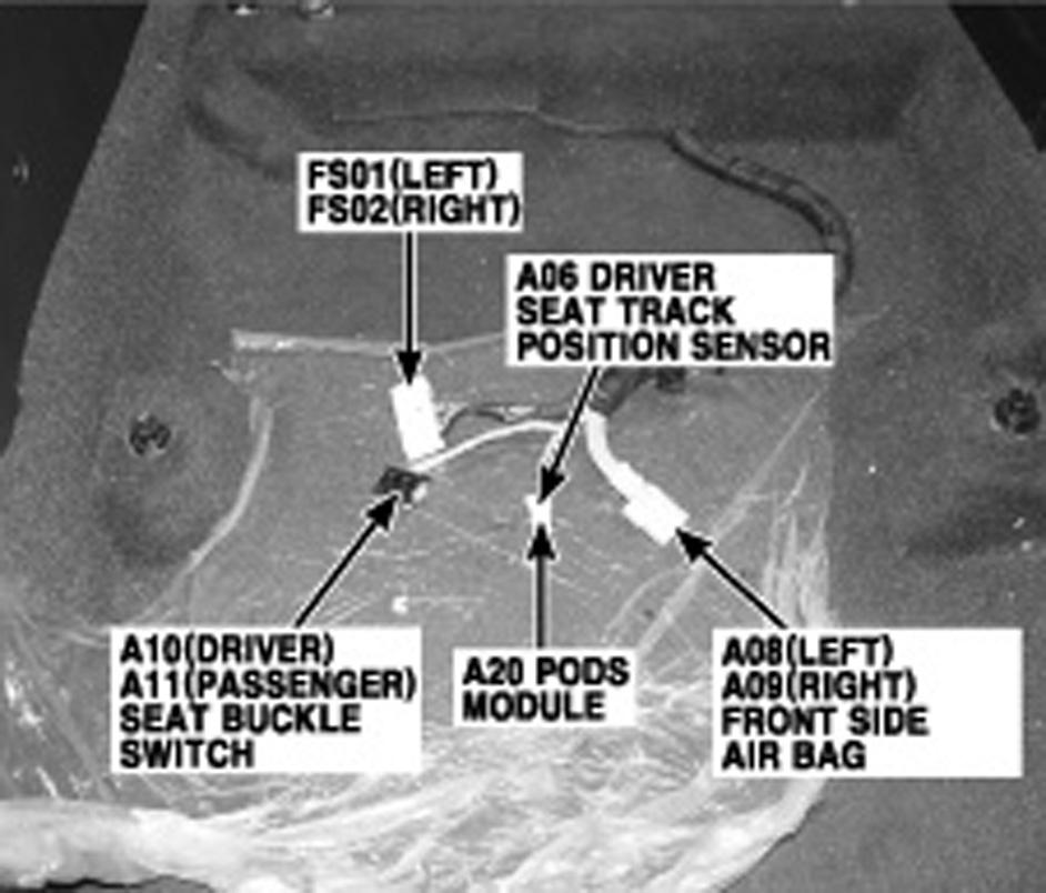 | PODS Module | Under right front seat. See Figure. |